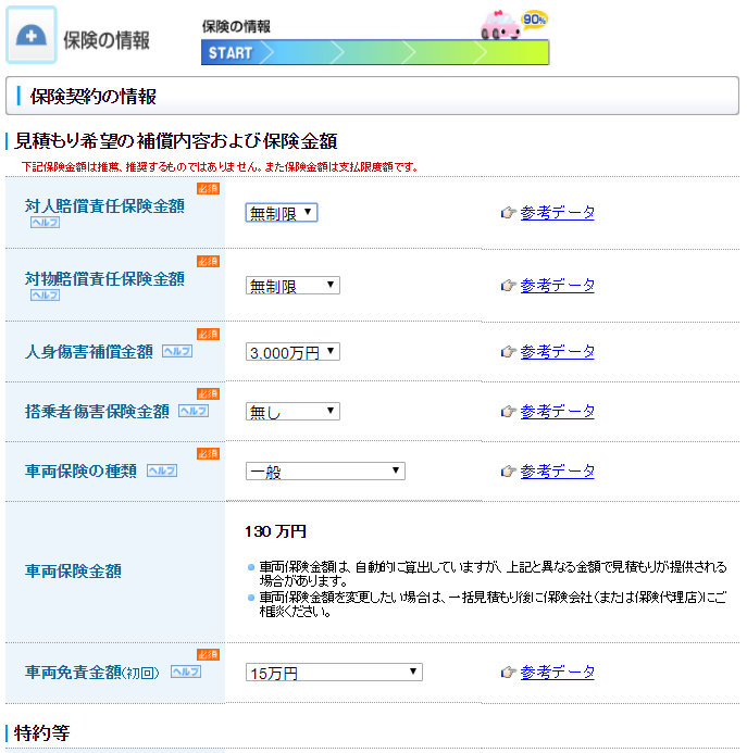 はじめに、保険の対象となる車種などの基本的な情報を入力していきます。