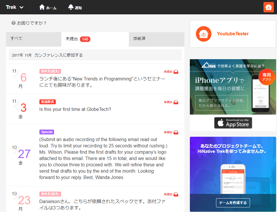 それと比べれば、圧倒的にHiNative Trekが気軽に始めやすい気がします。