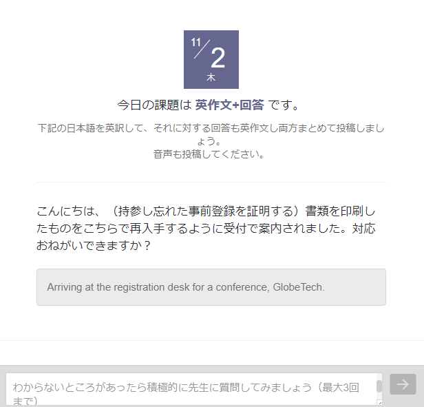毎日個別で細やかな回答や添削をしてもらいながら
